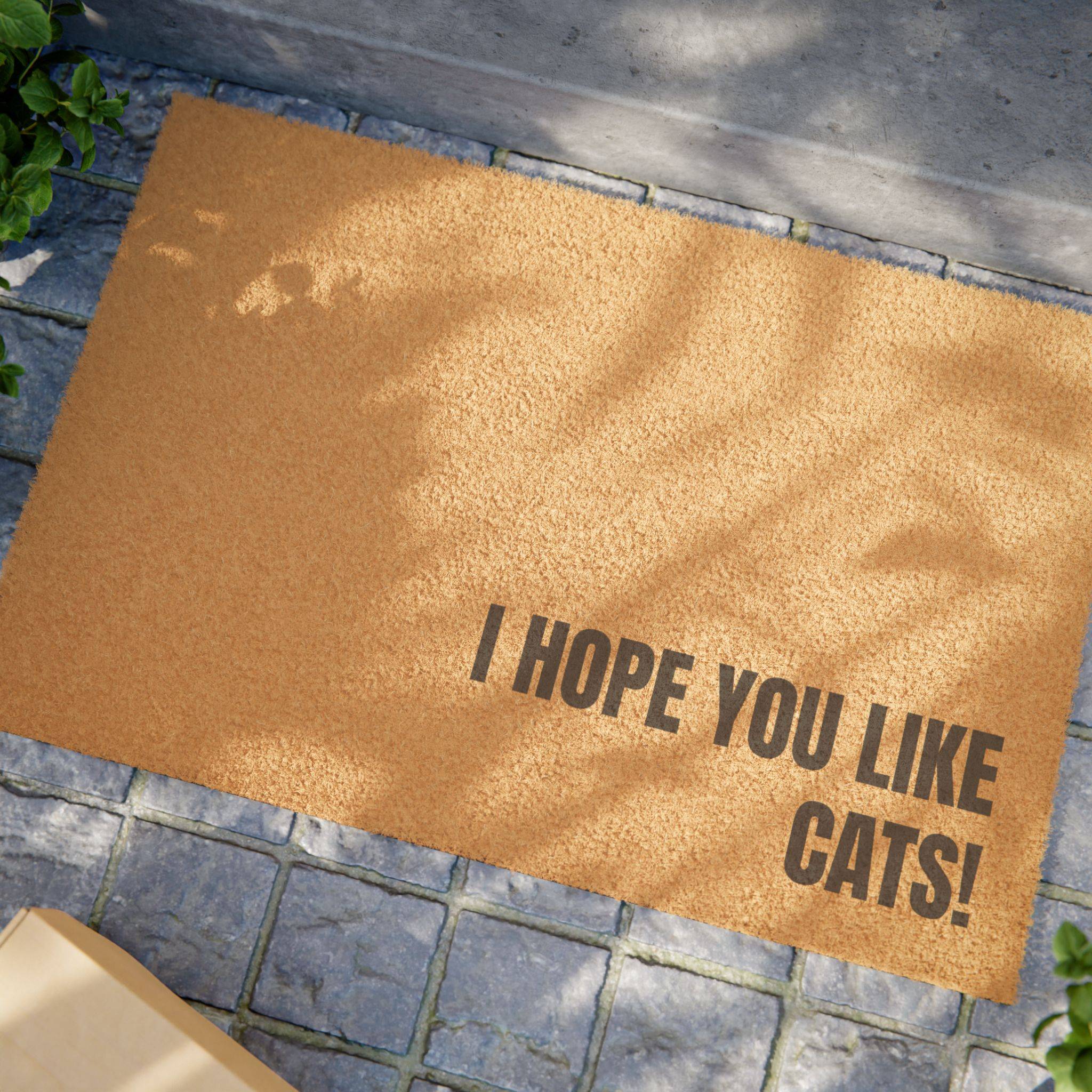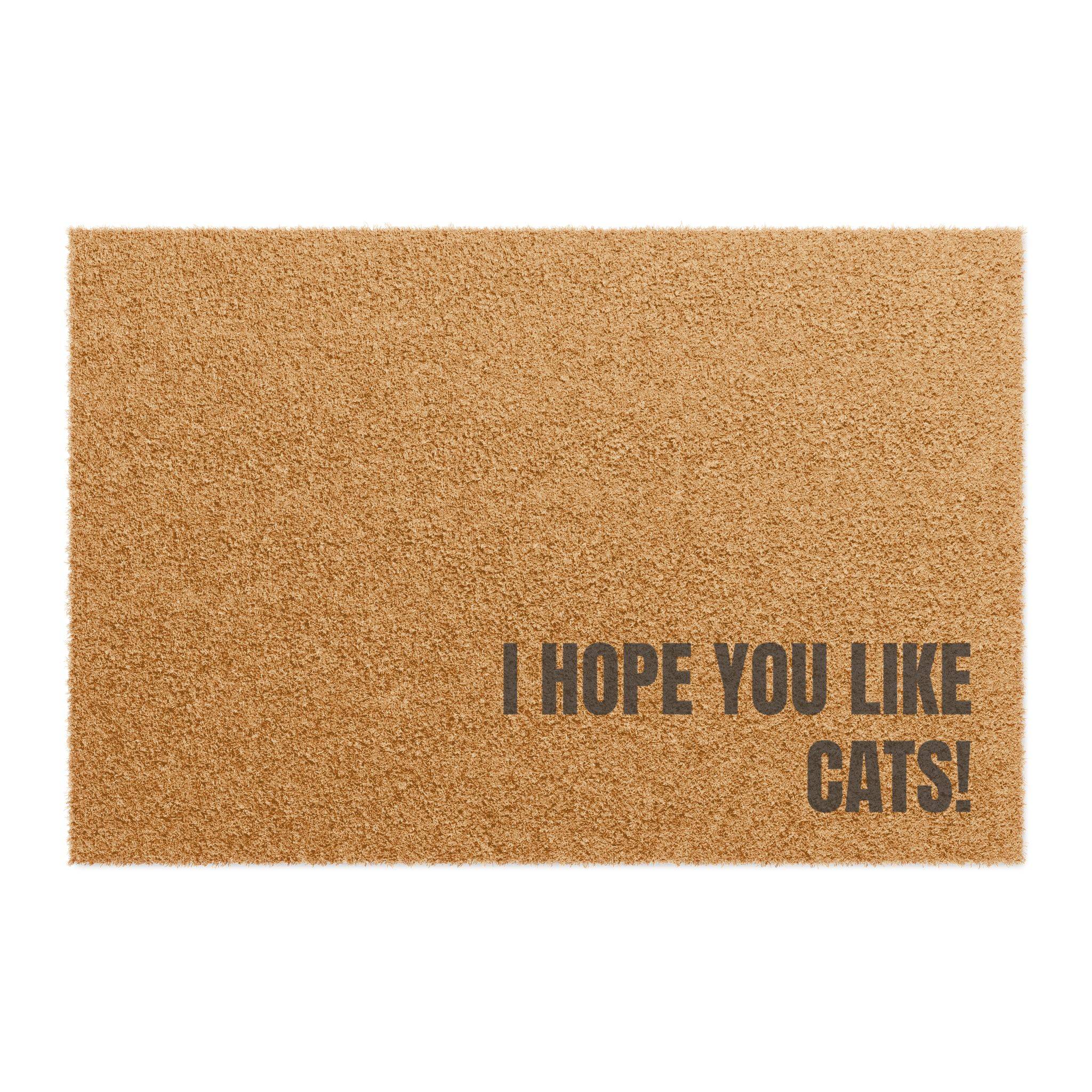 Welcome guests to your home with a touch of feline charm! The “I Hope You Like Cats” door mat, measuring 24″ x 16″, is crafted from premium coconut coir, making it both durable and eco-friendly. Its playful design is sure to bring a smile to any cat lover’s face and keep dirt at bay, making it the perfect addition to your entryway!